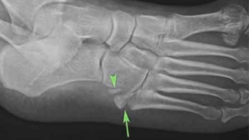 Ниже представлено изображение перелома кубовидной кости стопы: